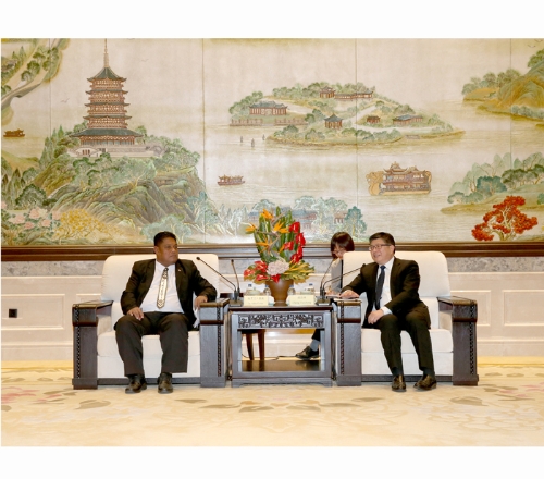 12月16日,副省长成岳冲在杭州会见了基里巴斯妇女、青年、体育和社会事务部长塔奥巴·凯亚一行。
