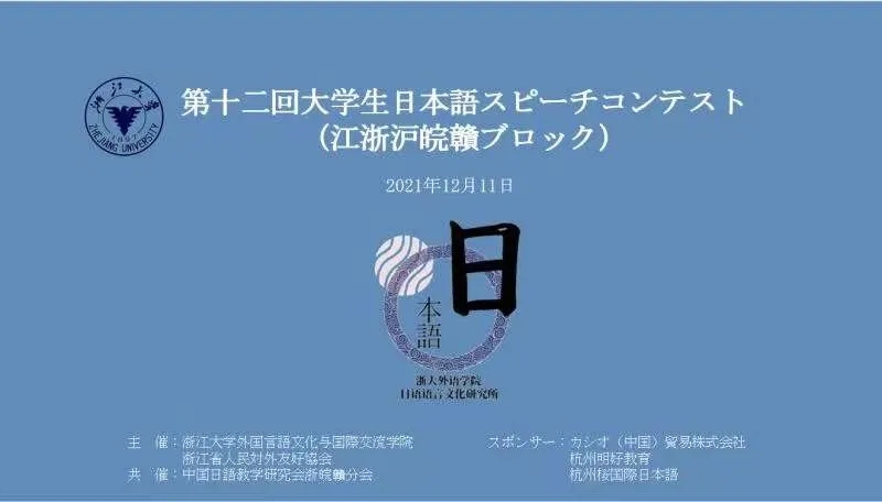 12月11日,由浙江省人民对外友好协会与浙江大学外国语言文化和国际交流学院共同主办的第12届大学生日语演讲比赛(江浙沪皖赣地区)以线上方式成功举办。