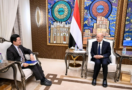 2025年11月12日,驻也门使馆临时代办邵峥在利雅得拜会也门总统领导委员会主席阿里米,双方围绕中也关系、也门及地区局势等进行深入交流。